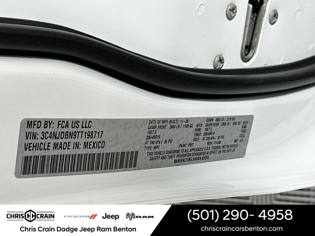 $2,961 off MSRP! Priced below KBB Fair Purchase Price! 2026 Jeep Compass Latitude Bright White Clearcoat 4WD