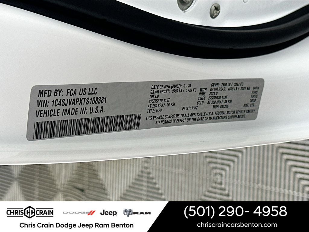 $4,073 off MSRP! Priced below KBB Fair Purchase Price! 2026 Jeep Grand Wagoneer Upland Bright White Clearcoat 4WD