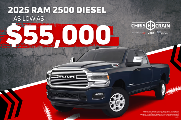 based on stock number SG582034. MSRP of $67,250. Financing must be arranged through one of Chris Crains preferred lending partners or the price will increase by $1,500. Offer is valid until March 3rd, 2026. TT&L fees are not included. Please see dealer for complete details.