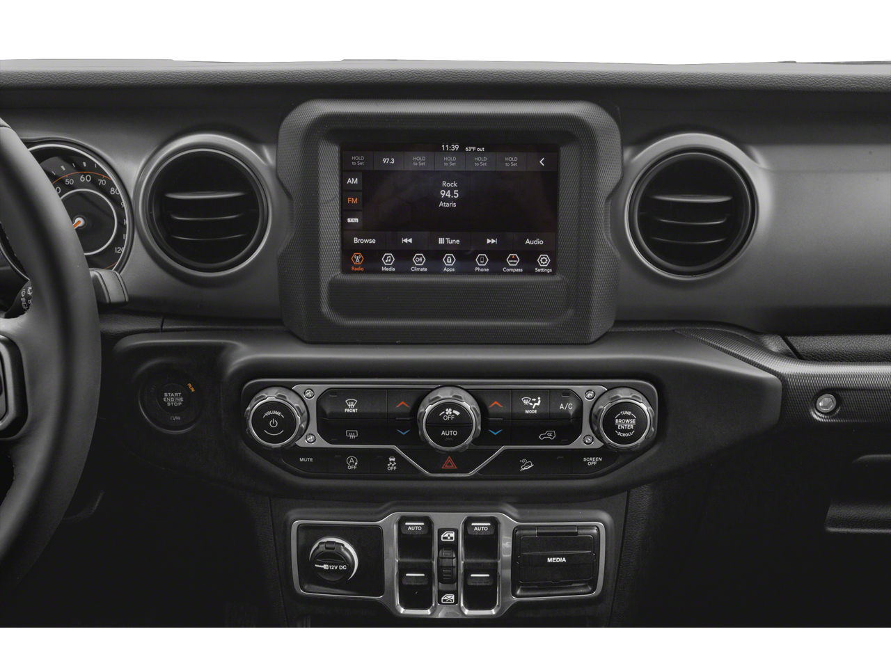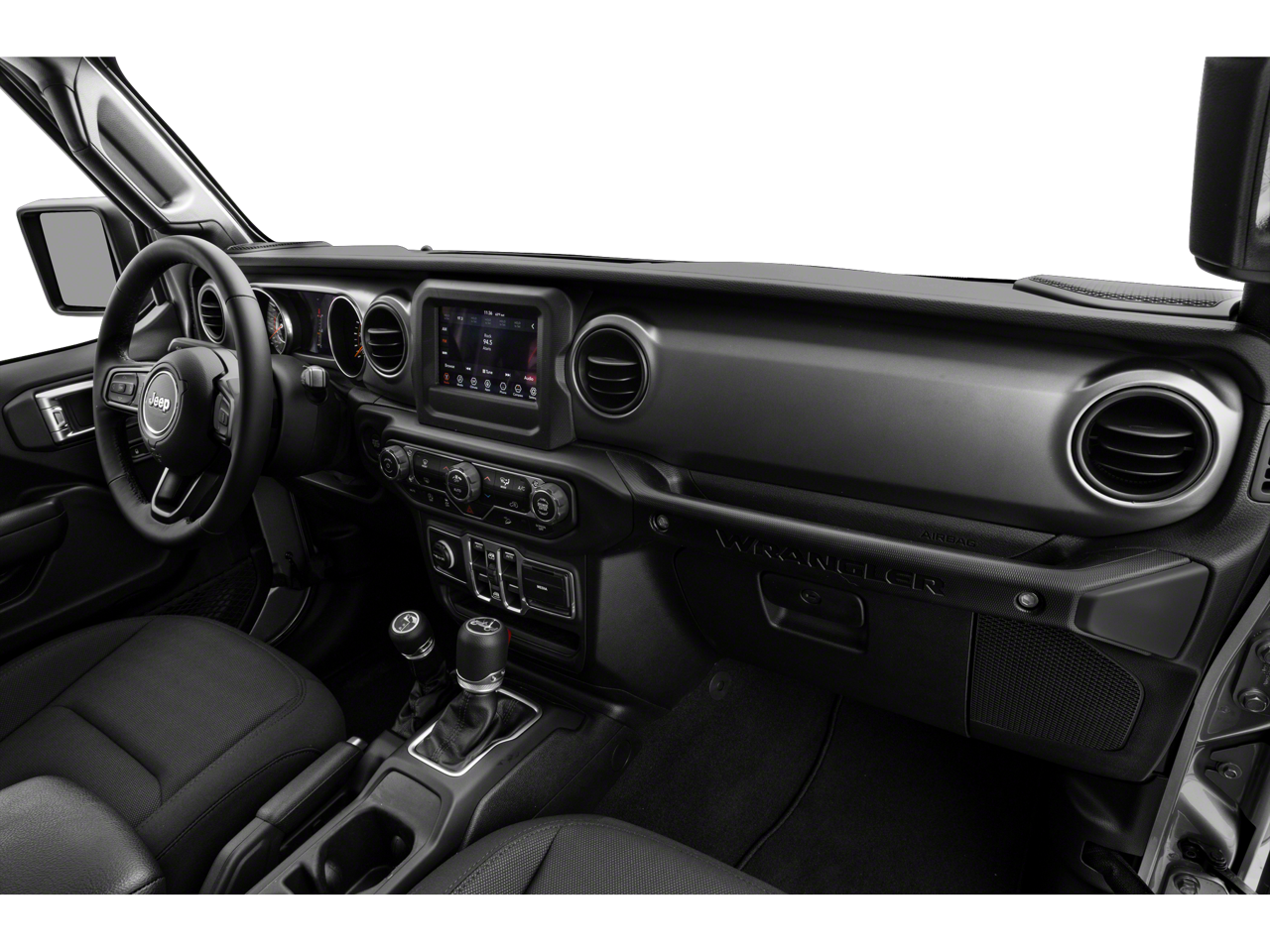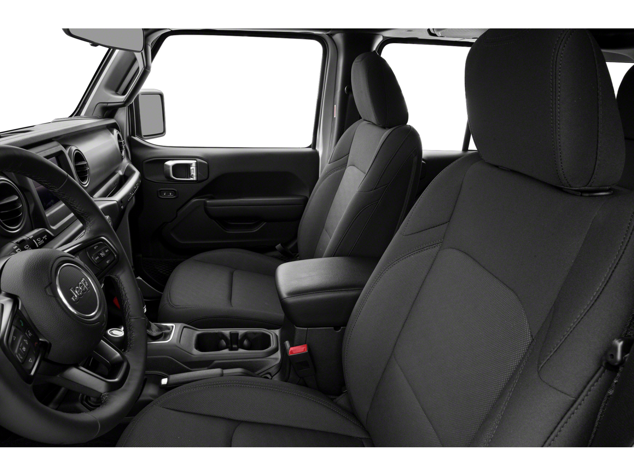 Step inside this Wrangler and discover a cabin that seamlessly blends rugged utility with modern refinement. The leather-wrapped steering wheel and sun visors with illuminated vanity mirrors add a touch of sophistication, while the freedom panel storage bag and no soft top provide the versatility you need for your active lifestyle.