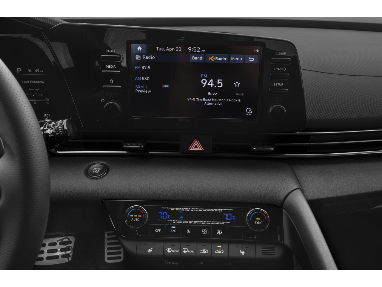 - Radio: AM/FM/HD/SiriusXM Display Audio -inc: 8" high resolution touch screen display, 6 speakers, wireless Apple CarPlay & Android Auto, Bluetooth® hands-free phone system w/voice recognition, USB port, wireless device charging, speed-sensitive automatic volume control and Blue Link connected car system