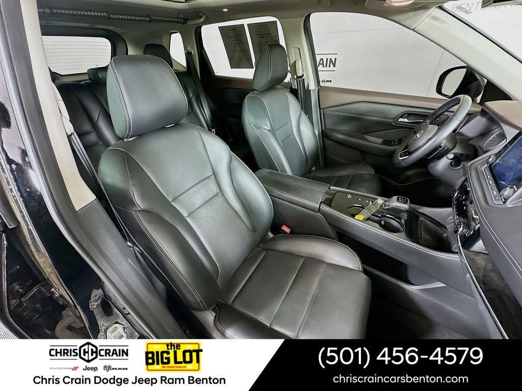 Step inside and you'll be greeted by a spacious and well-appointed cabin, featuring premium leather-appointed seating, heated front seats, and a power driver's seat for ultimate comfort and convenience. The Rogue SL also offers a wealth of advanced technology, including a premium audio system, dual-zone automatic climate control, and the intuitive NissanConnect infotainment system with seamless smartphone integration.