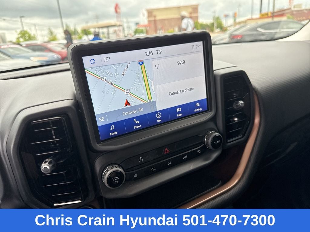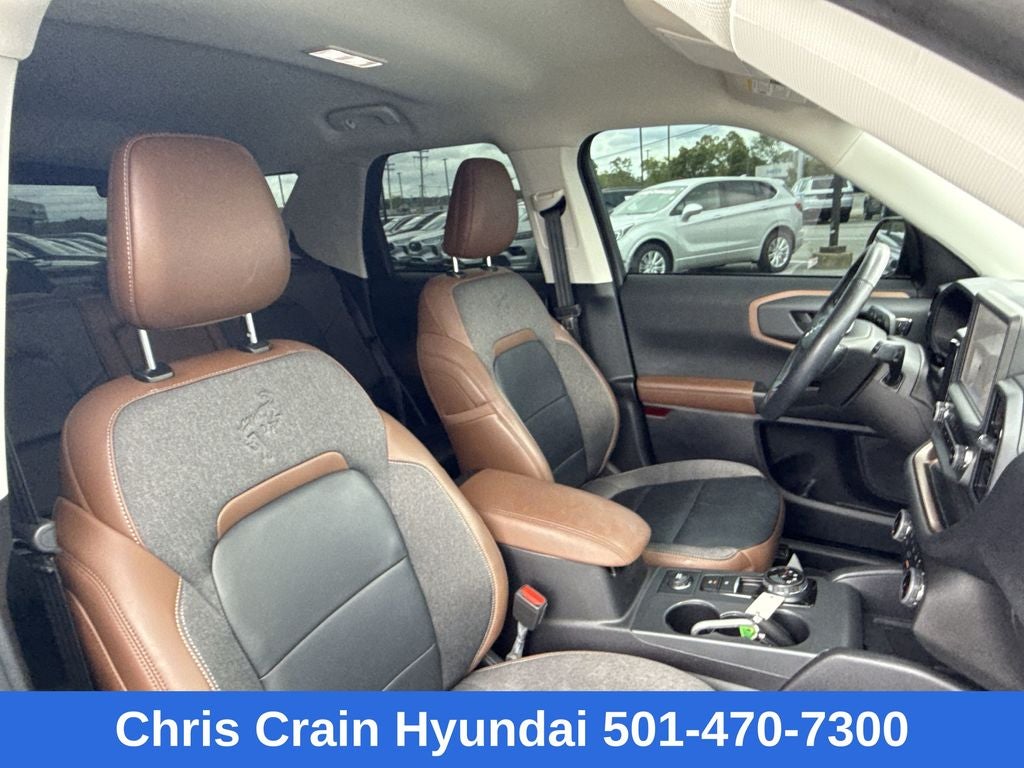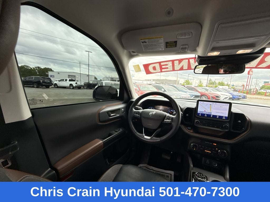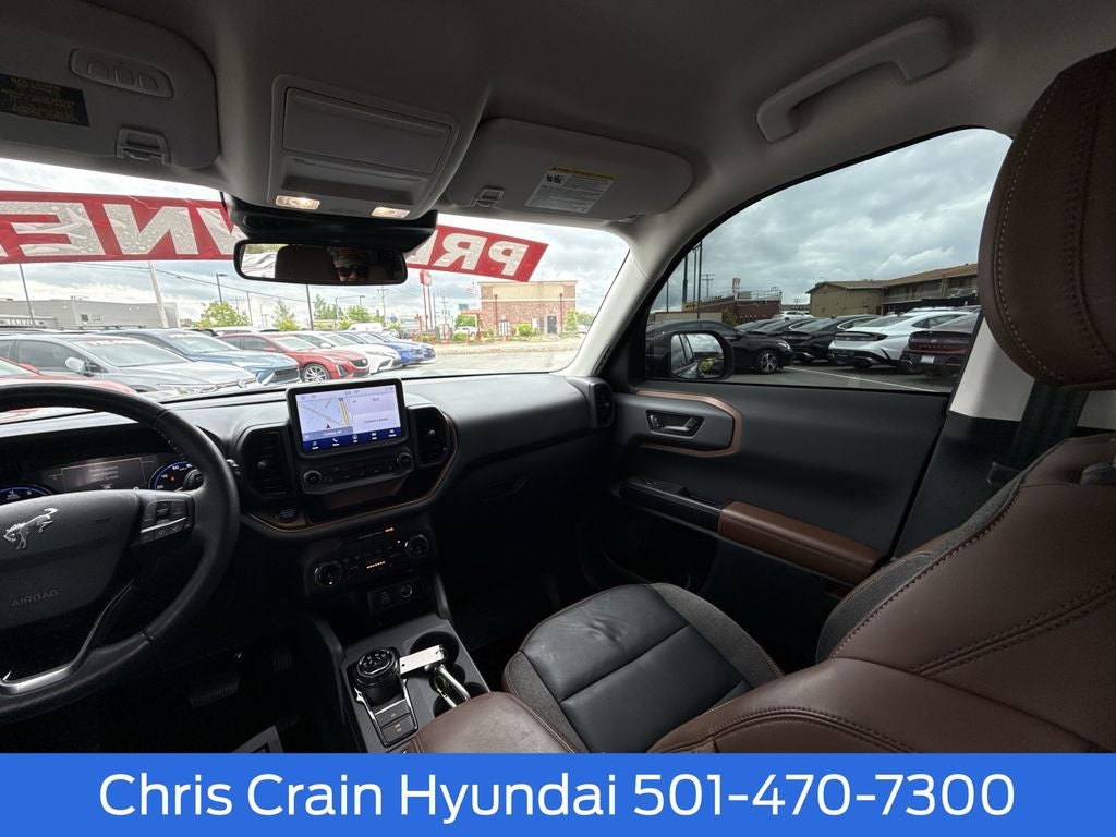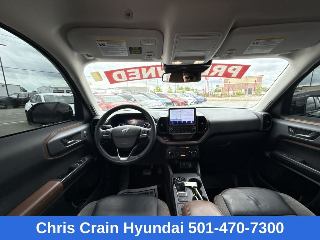 Step inside the Bronco Sport Outer Banks and discover a cabin that seamlessly blends rugged capability with modern refinement. Indulge in the comfort of leather-trimmed heated sport contour bucket seats, while the voice-activated touchscreen navigation system and wireless charging pad keep you connected and powered up on the go. The Bang & Olufsen sound system provides a concert-hall experience, elevating every journey.