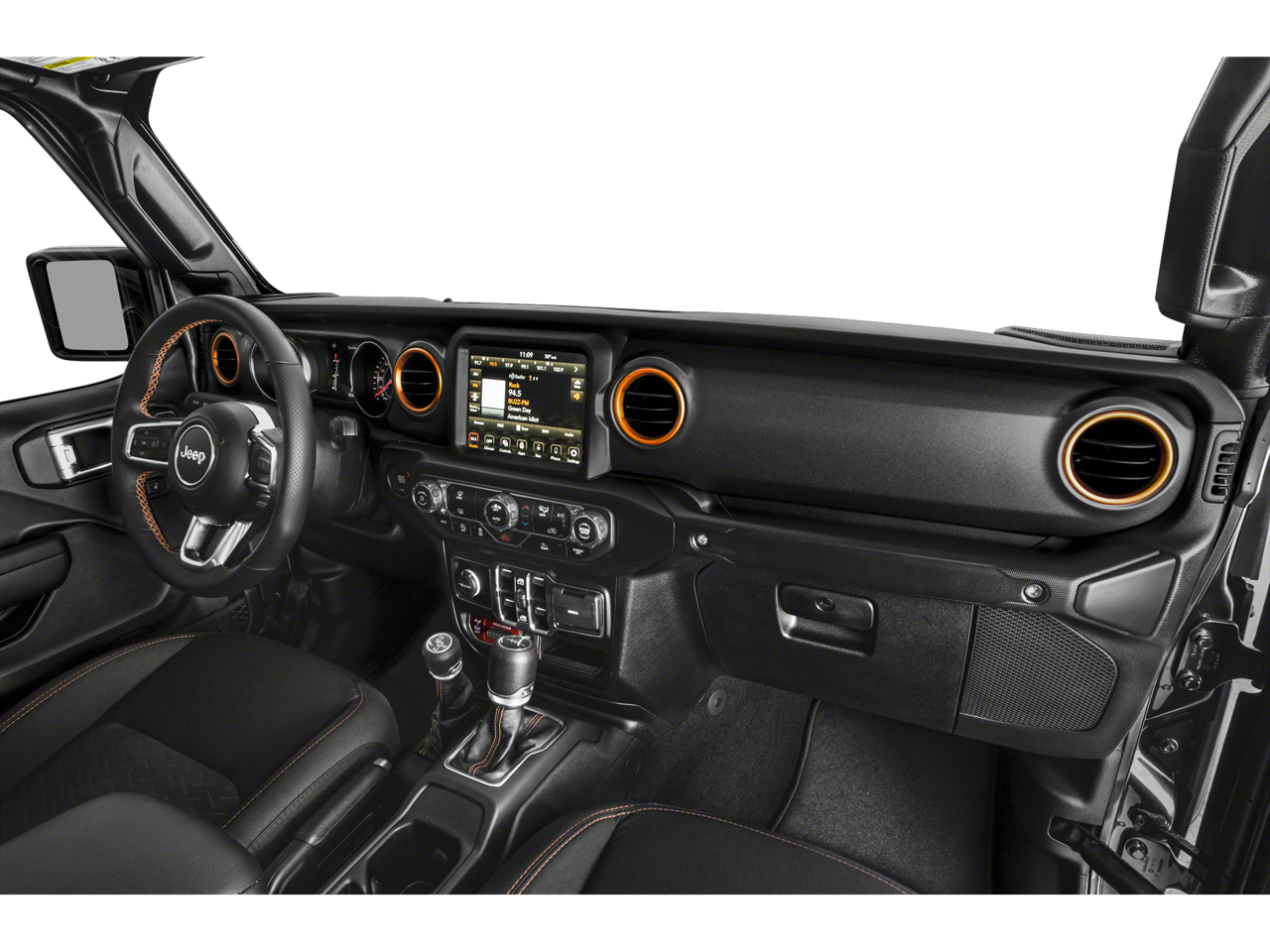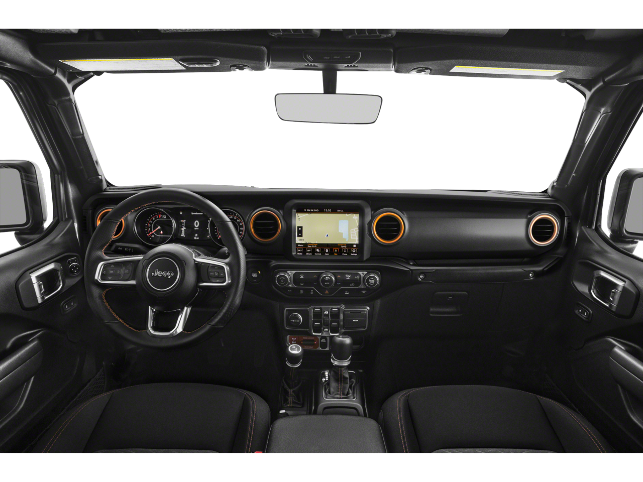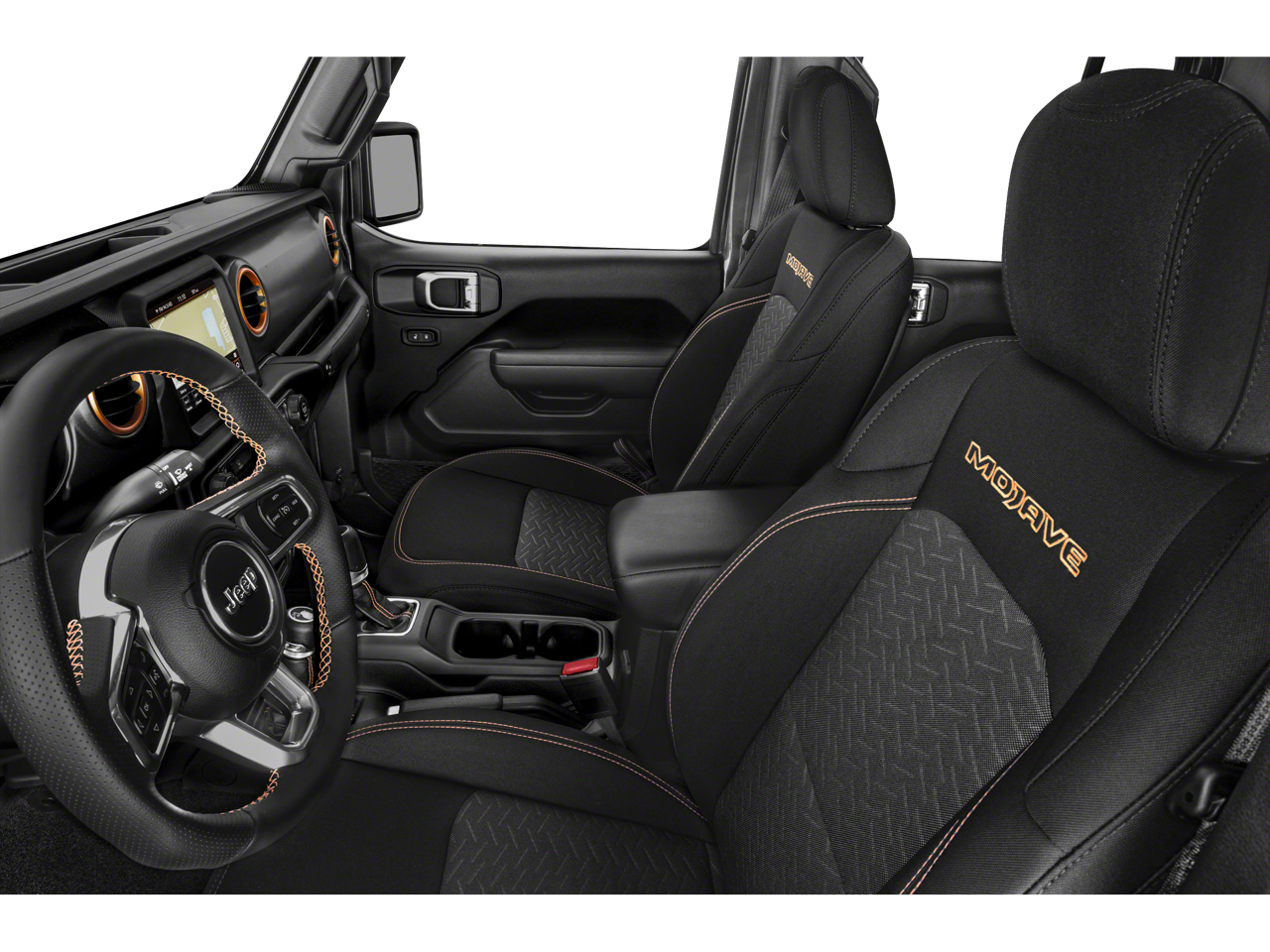Inside, the Gladiator Mojave offers a premium cabin experience, with leather-trimmed bucket seats, a full-length floor console, and a leather-wrapped shift knob and park brake handle. The 8.4-inch Uconnect 4C navigation system provides seamless connectivity and advanced technology, keeping you connected and informed on the go.