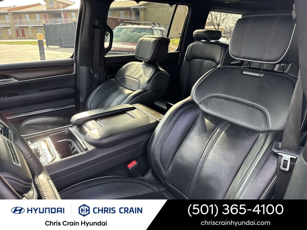 Step inside and experience the unparalleled luxury of the Grand Wagoneer. The spacious cabin is outfitted with premium materials, including genuine wood and leather accents, creating a truly refined and sophisticated atmosphere. The advanced Uconnect 5 infotainment system with a 12-inch display keeps you connected and entertained, while the 19-speaker audio system delivers an exceptional listening experience.