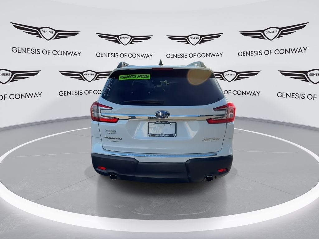 Ascent Premium, 2.4L 4-Cylinder DOHC 16V, Lineartronic CVT, AWD, Crystal White Pearl, Warm Ivory Cloth, 6 Speakers, Air Conditioning, Auto-Dimming Rear View Compass Mirror w/HomeLink, Convenience Package, Emergency communication system: STARLINK Safety and Security (Subscription Required), Exterior Parking Camera Rear, Front dual zone A/C, Heated door mirrors, Heated Front Bucket Seats, Illuminated entry, Keyless Access w/Push-Button Start, Leather steering wheel, Outside temperature display, Power driver seat, Power Rear Gate w/Automatic Close & Height Memory, Power steering, Power windows, Radio data system, Radio: Subaru STARLINK 11.6 Multimedia Plus System, Rear air conditioning, Reclining 3rd row seat, Remote keyless entry, Reverse Automatic Braking (RAB) System, Spill Resistant Coated Cloth Upholstery, Split folding rear seat, STARLINK/Apple CarPlay/Android Auto, Telescoping steering wheel, Traction control, Variably intermittent wipers, Wheels: 18 x 7.5 J Gray Alloy w/Machine Finish.
