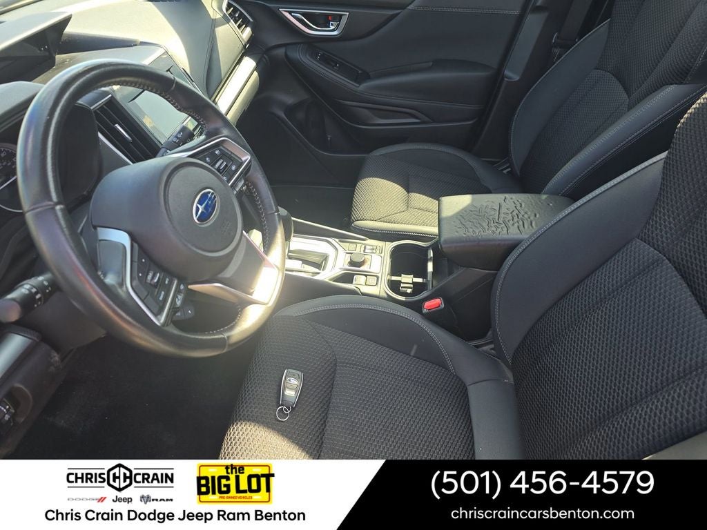 Designed with your comfort and convenience in mind, the Forester Premium boasts a spacious and well-appointed interior. Slip into the premium cloth-upholstered heated front seats and enjoy the convenience of the power driver's seat, steering wheel-mounted audio controls, and automatic climate control. The panoramic power moonroof floods the cabin with natural light, creating an open and airy atmosphere.