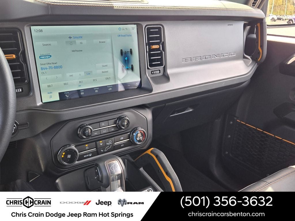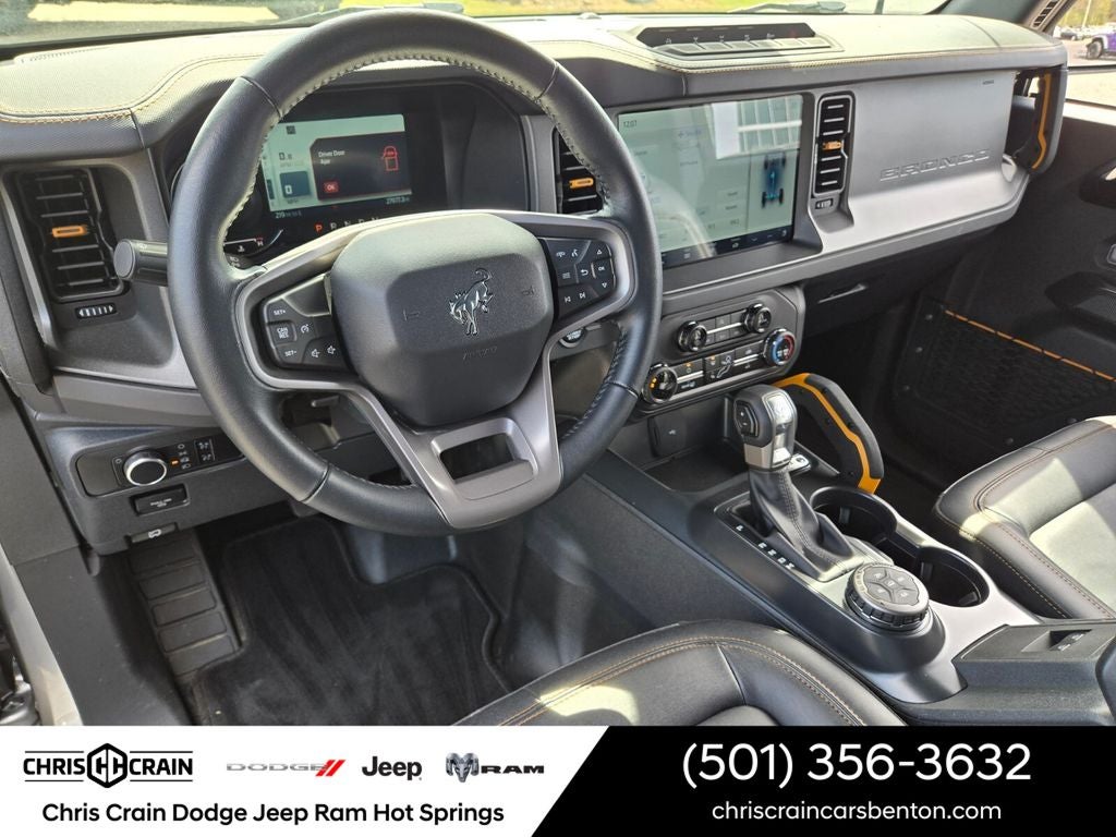Inside, the Bronco Badlands offers a premium and versatile cabin, with features like marine-grade vinyl bucket seats, a leather-wrapped shift knob, and an available convertible hardtop. The SYNC 4 infotainment system with SiriusXM Radio and 360L keeps you connected and entertained, while the integrated roll-over protection and advanced safety features provide peace of mind on the road.