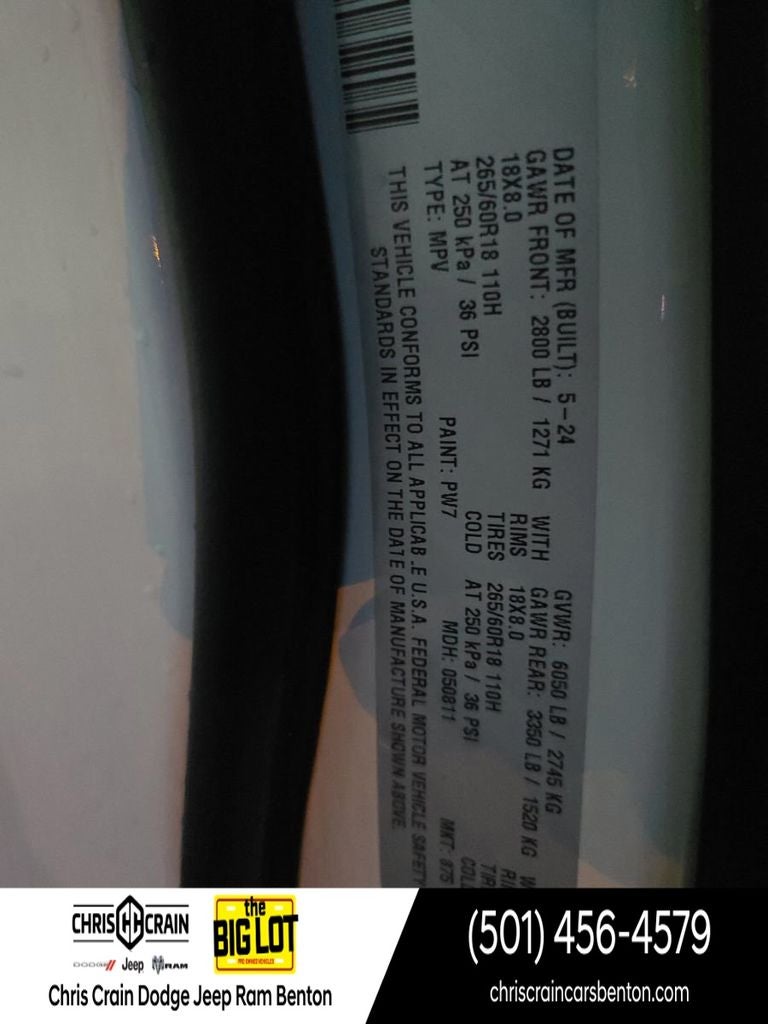 - Includes Engine: 3.6L V6 24V VVT UPG I w/ESS, Transmission: 8-Speed Automatic 8HP50, Selectable Tire Fill Alert, Remote Start System, Secondary Active Grille Shutters, Rain Sensitive Windshield Wipers, Wireless Charging Pad, Heated Front Seats, Altitude Appearance Package, Black Headliner, Delete Laredo Badge, 115V Auxiliary Power Outlet, Gloss Black Exterior Accents, Heated Steering Wheel, Power Liftgate
