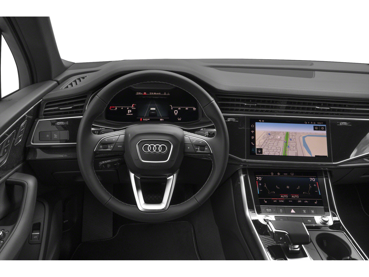 Step inside and be captivated by the premium features that elevate this Q7 to a new level of sophistication. The Audi MMI Navigation plus with Touch Response system provides seamless connectivity and intuitive control, while the Audi Sound System delivers a concert-hall experience. Dual-zone automatic climate control ensures everyone onboard enjoys their ideal temperature, and the panoramic sunroof floods the cabin with natural light.